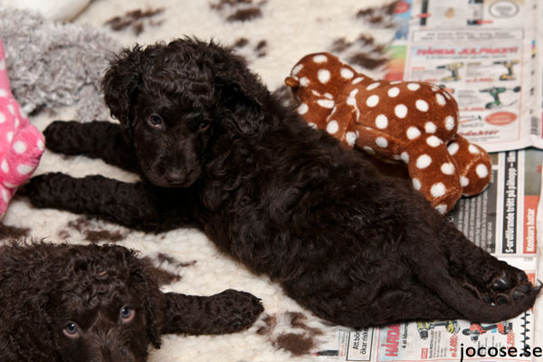 Jag gissar att du bara på bilden här kan e vad vi har gjort igår. Men det som bilden inte visar är att alla valparna har fått vara ute i snön för första gången, och de gjorde alla dessutom ifrån sig där innan vi gick in igen. De har också fått vara på en åktur med bilen, de var äl inte sådär jätteimponerade och nöjda med den biten men det är ju något de måste träna på och för att vara första gången måste jag säga att det gick ganska bra.